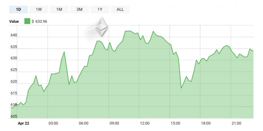 Ethereum is also in the green, trading for over $600 at press time after spending several weeks locked in $400 and even $300 territory. The currency rose to its present spot after several resistance breaks between $500 and $570.